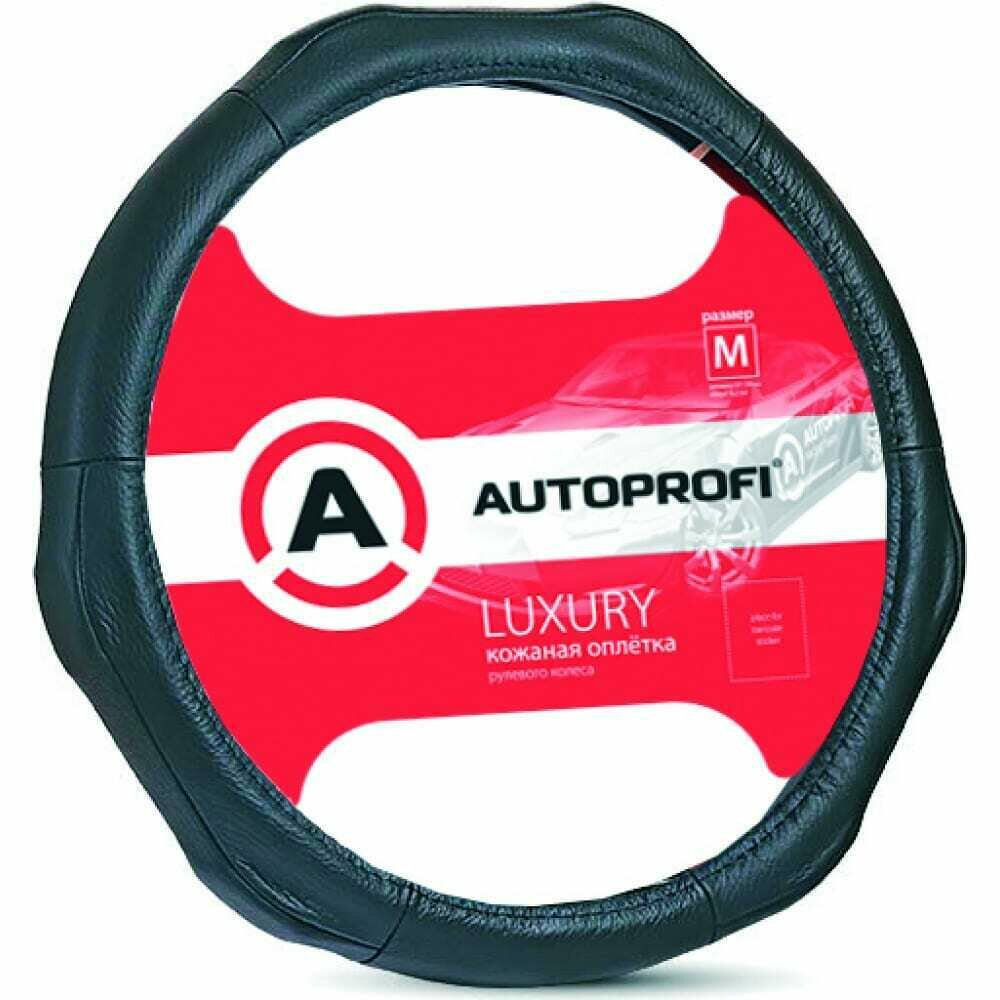 AUTOPROFI Оплётка руля Luxury кожа, 3 рельефные вставки (черный) (М)
