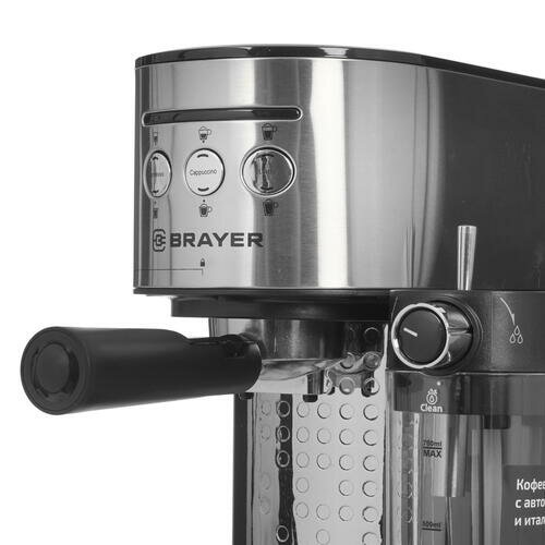 Кофеварка рожковая BRAYER BR1102, серебристый/черный интересное: