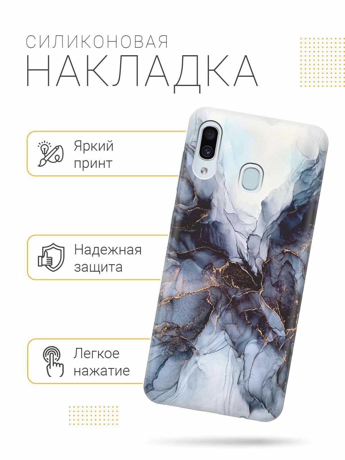 Купить Ультратонкий силиконовый чехол-накладка для Samsung Galaxy A40 с принтом "Черно-белый мрамор"