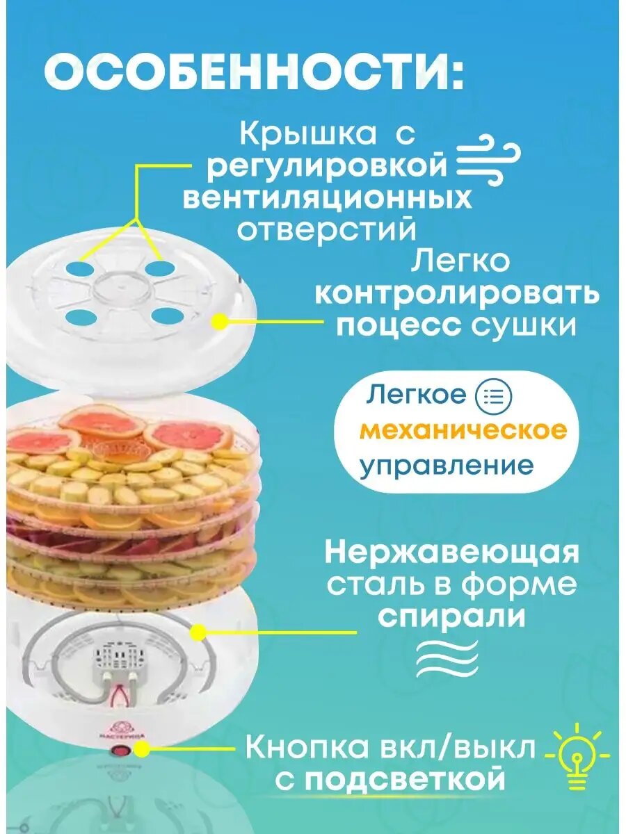 Овощи и фрукты не пересушивает Размер удобен для домашнего использования Простая в использовании |