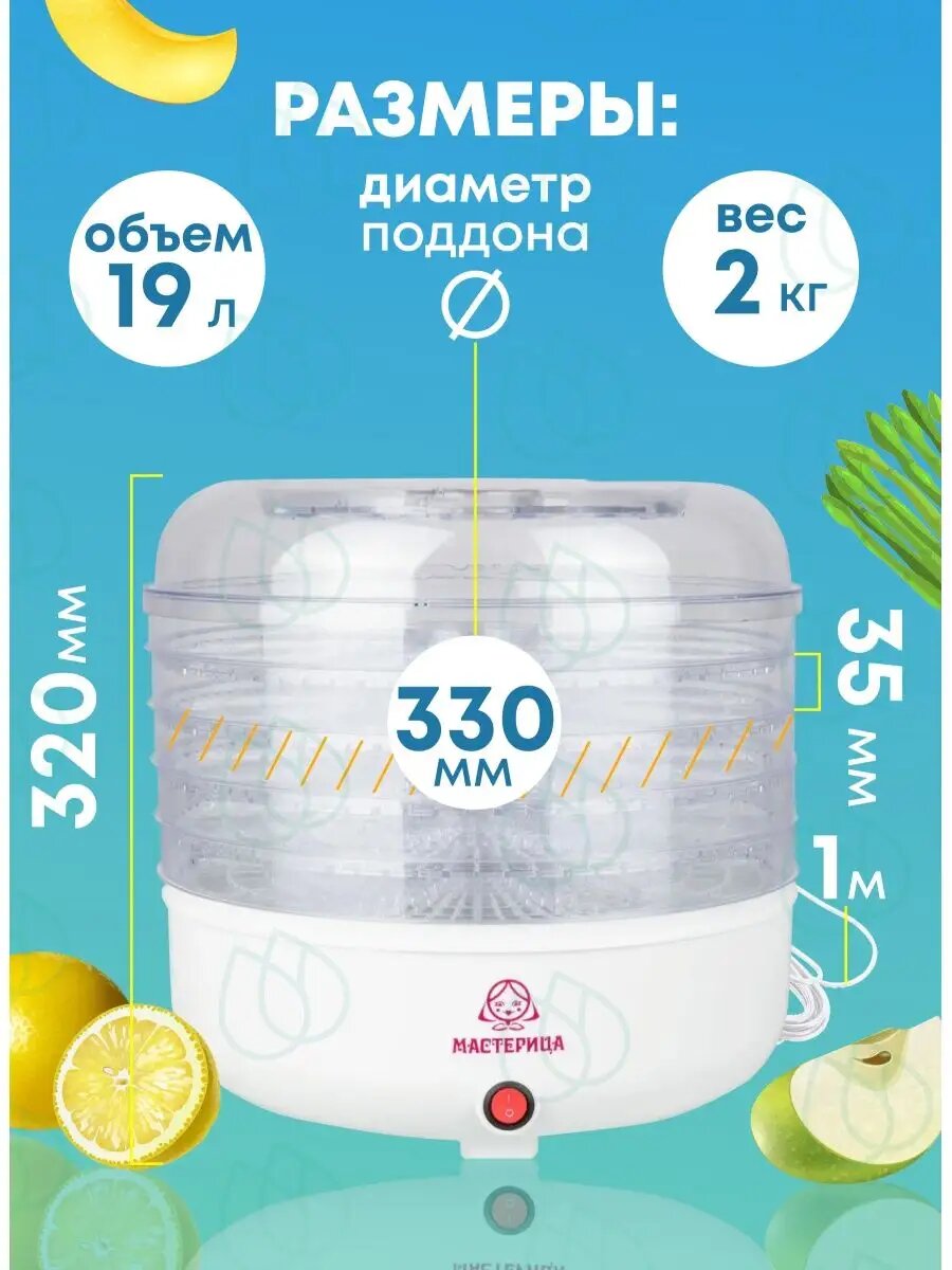 Сушилка для овощей и фруктов мастерица СШ-0305, белый, 5 поддонов(плохая упаковка)