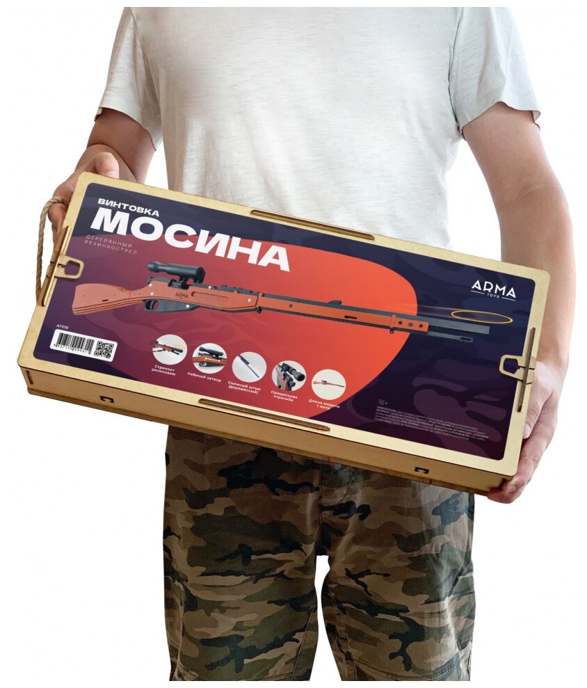 Ниже Вы можете прочитать отзывы на Игрушечная деревянная винтовка Мосина без прицела, стреляет резинками, со штыком, ознакомится с подробными характеристиками, посмотреть интересные обзоры и фотографии на Игрушечная деревянная винтовка Мосина без прицела, стреляет резинками, со штыком.