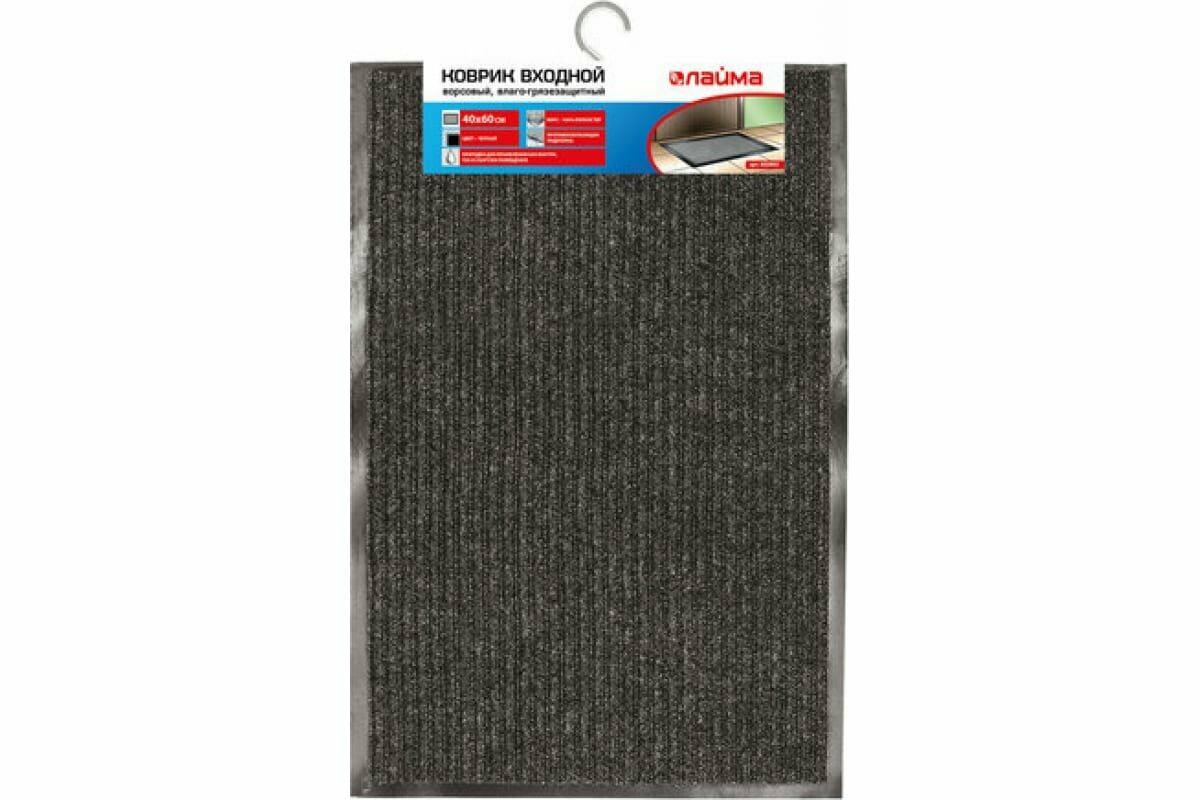 Коврик придверный лайма, ворсовый влаго-грязезащитный, 40х60 см, ребристый, толщина 7 мм, черный, 602863