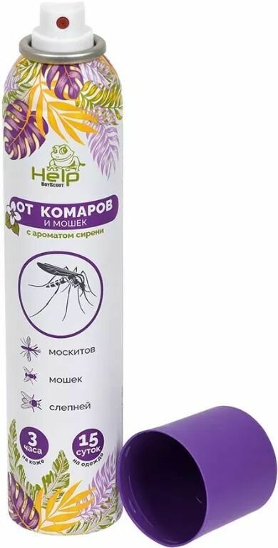 Аэрозоль-репеллент Help от комаров и мошек, с ароматом сирени, 200 мл (80219)