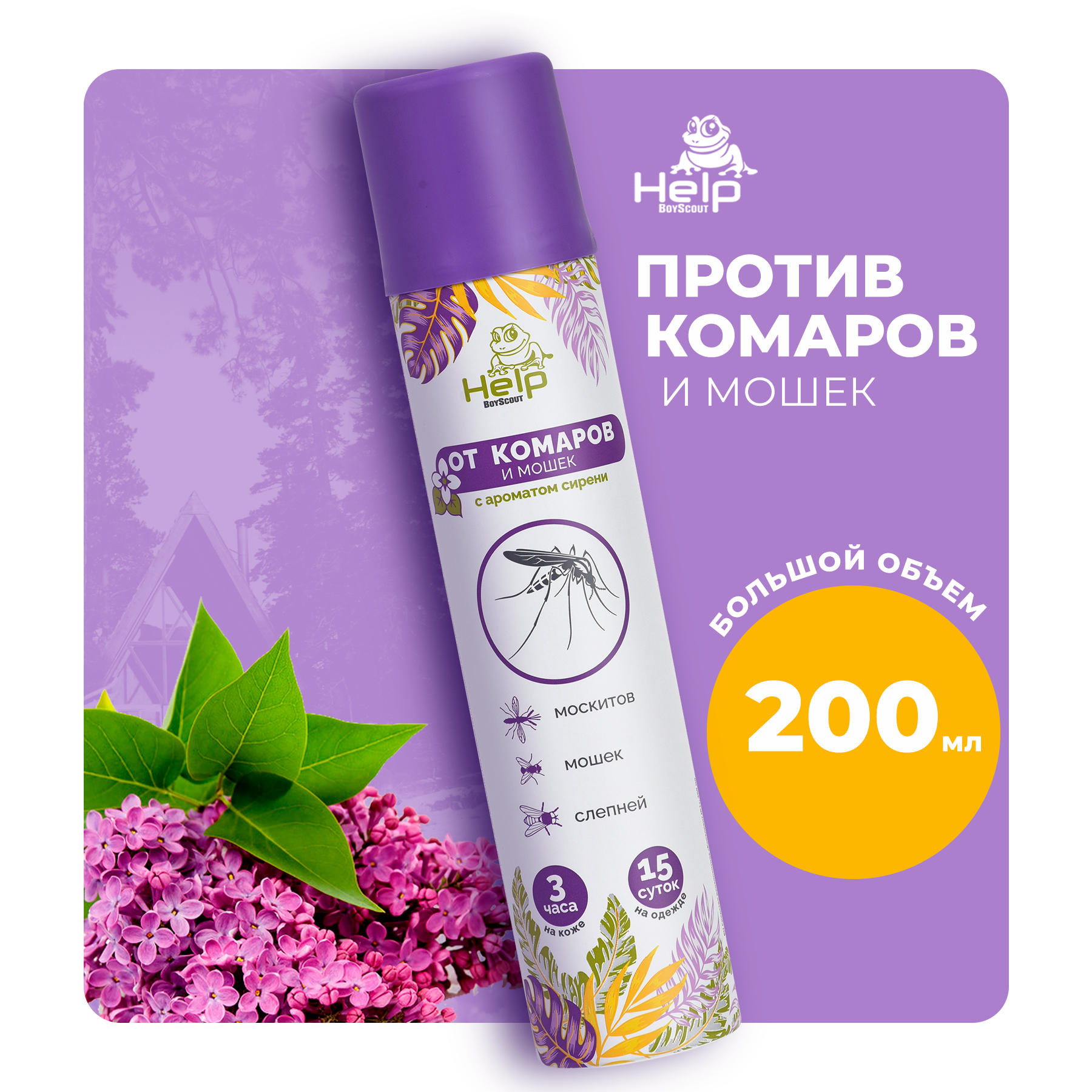 Репеллентный аэрозоль от комаров и мошек Help Сирень, 200 мл 80219 .