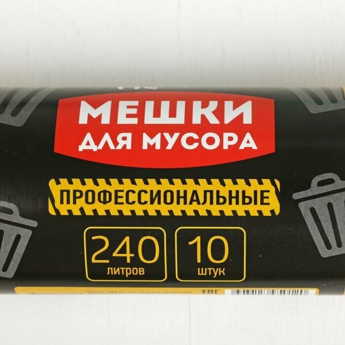 Мешки для мусора профессиональные, 240 л, 40 мкм, ПВД, 10 шт, цвет чёрный