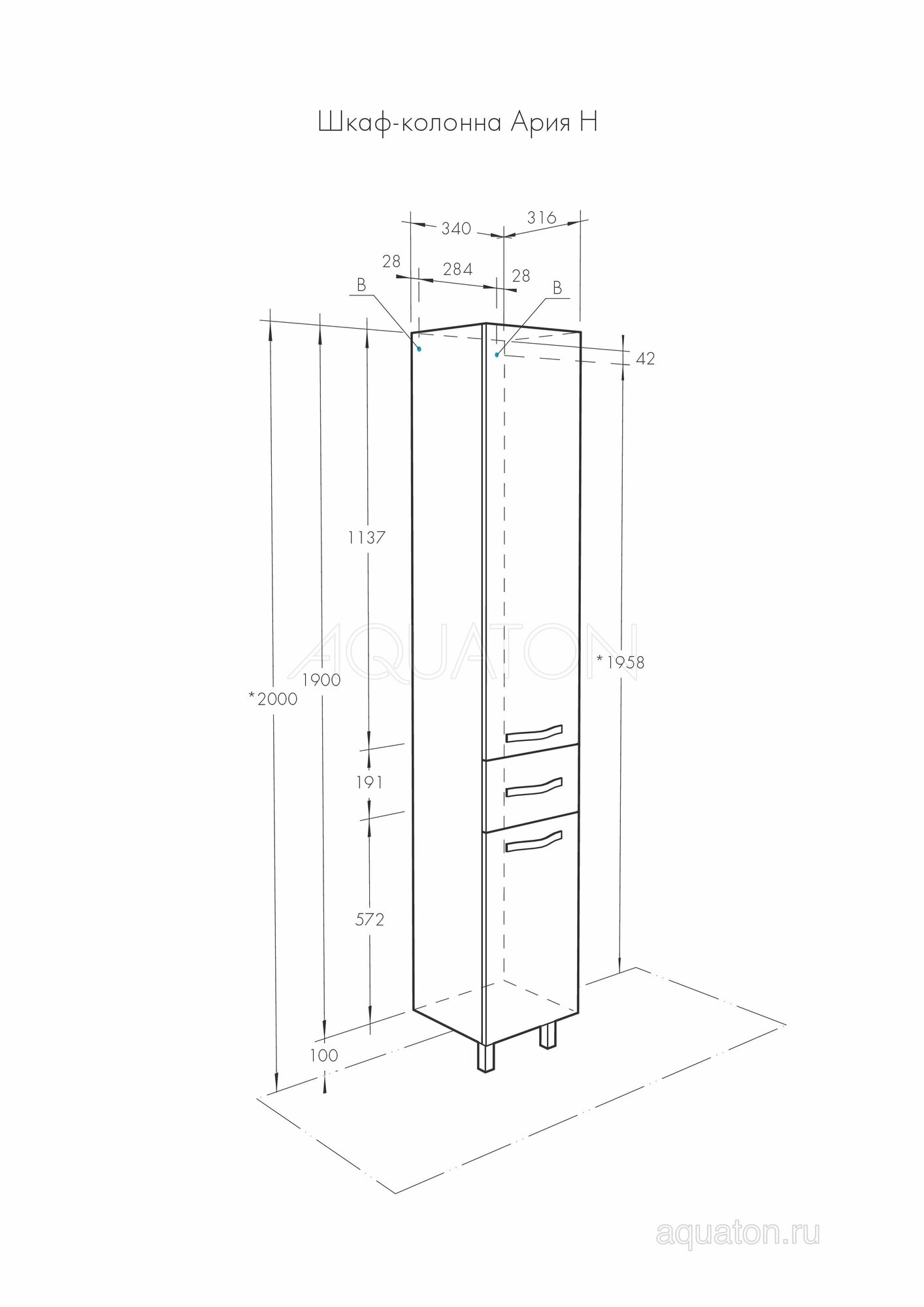 Акватон Шкаф-колонна Акватон - ария Н белый 1A124303AA010