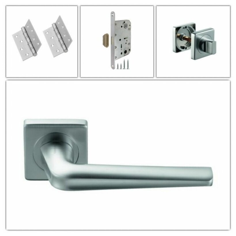 Ручки дверные на квадратной накладке ARCHIE Motive Line S040 14899 матовый хром
