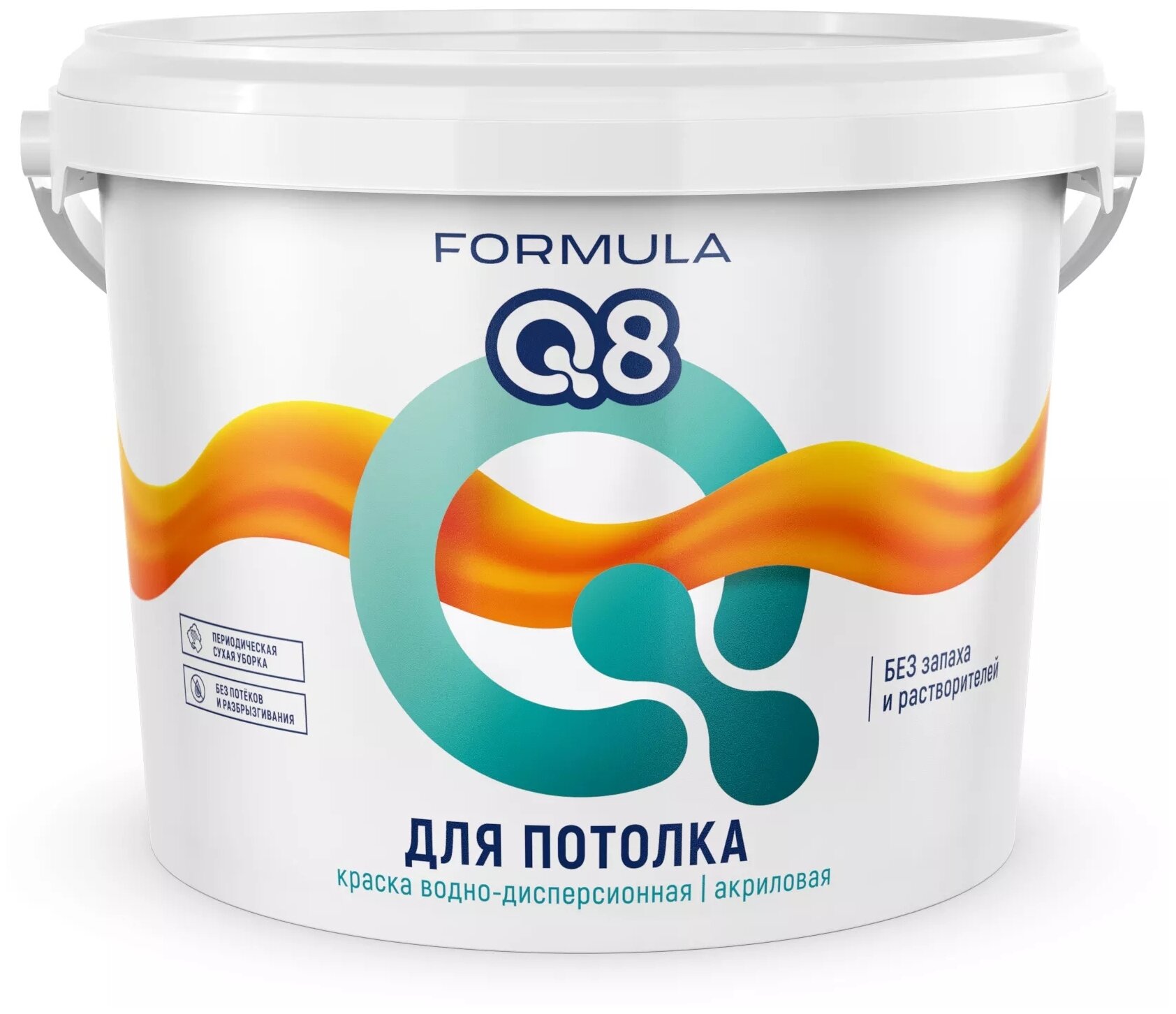 Краска для потолка водно-дисперсионная Formula Q8, акриловая, матовая, белая, 1,5 кг