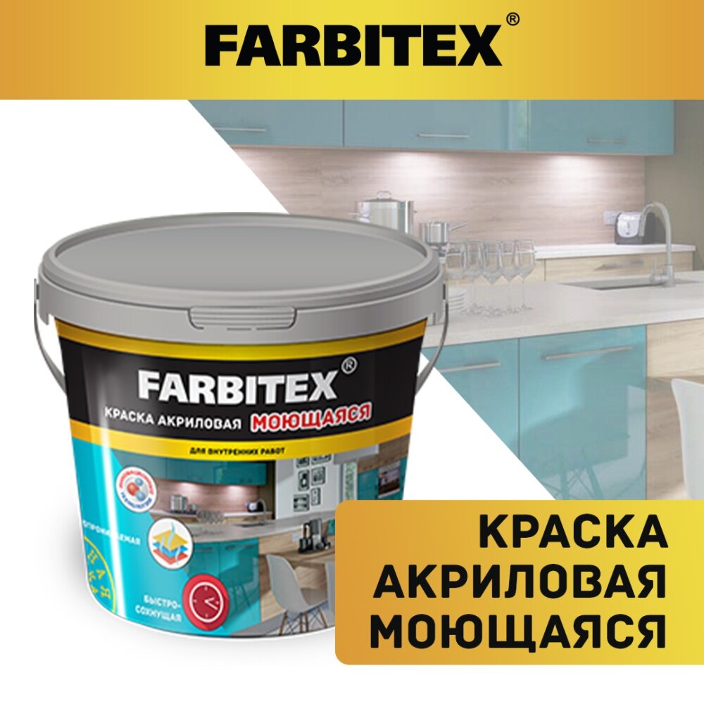 Краска акриловая моющаяся FARBITEX (Артикул: 4300004279; Фасовка = 3 кг)