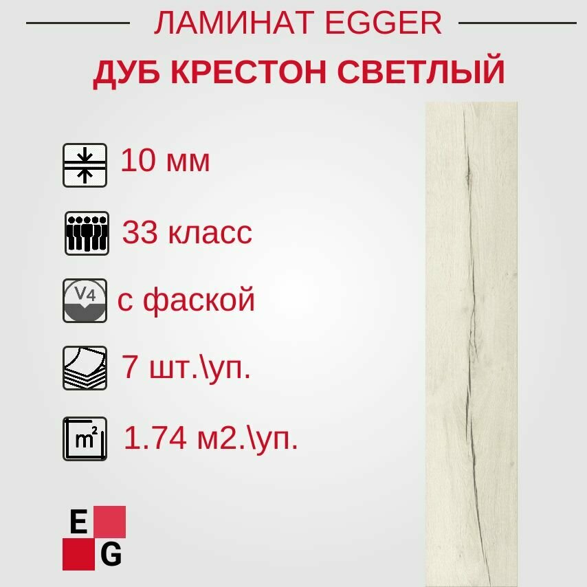 Ламинат Egger Дуб Крестон светлый EHL105 10мм 33 класс 1.74м2/уп. с фаской
