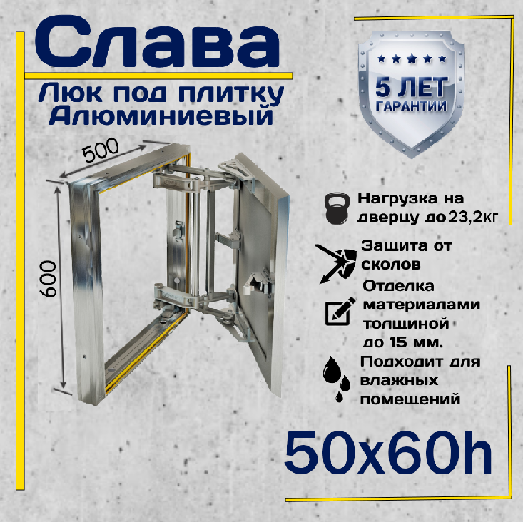 Ревизионный люк Слава 50х80 настенный под плитку Хаммер серебристый 50 см 80 см 6 см 30 кг