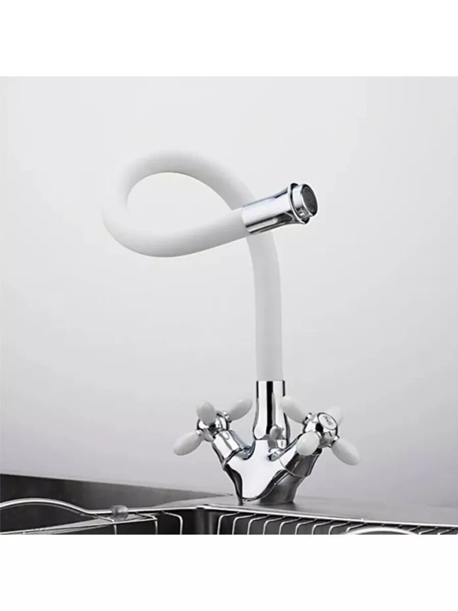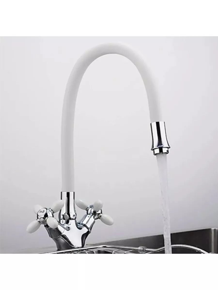 Смеситель для кухни с цветными ручками белый гибкий гусак FRUD R 44127-8