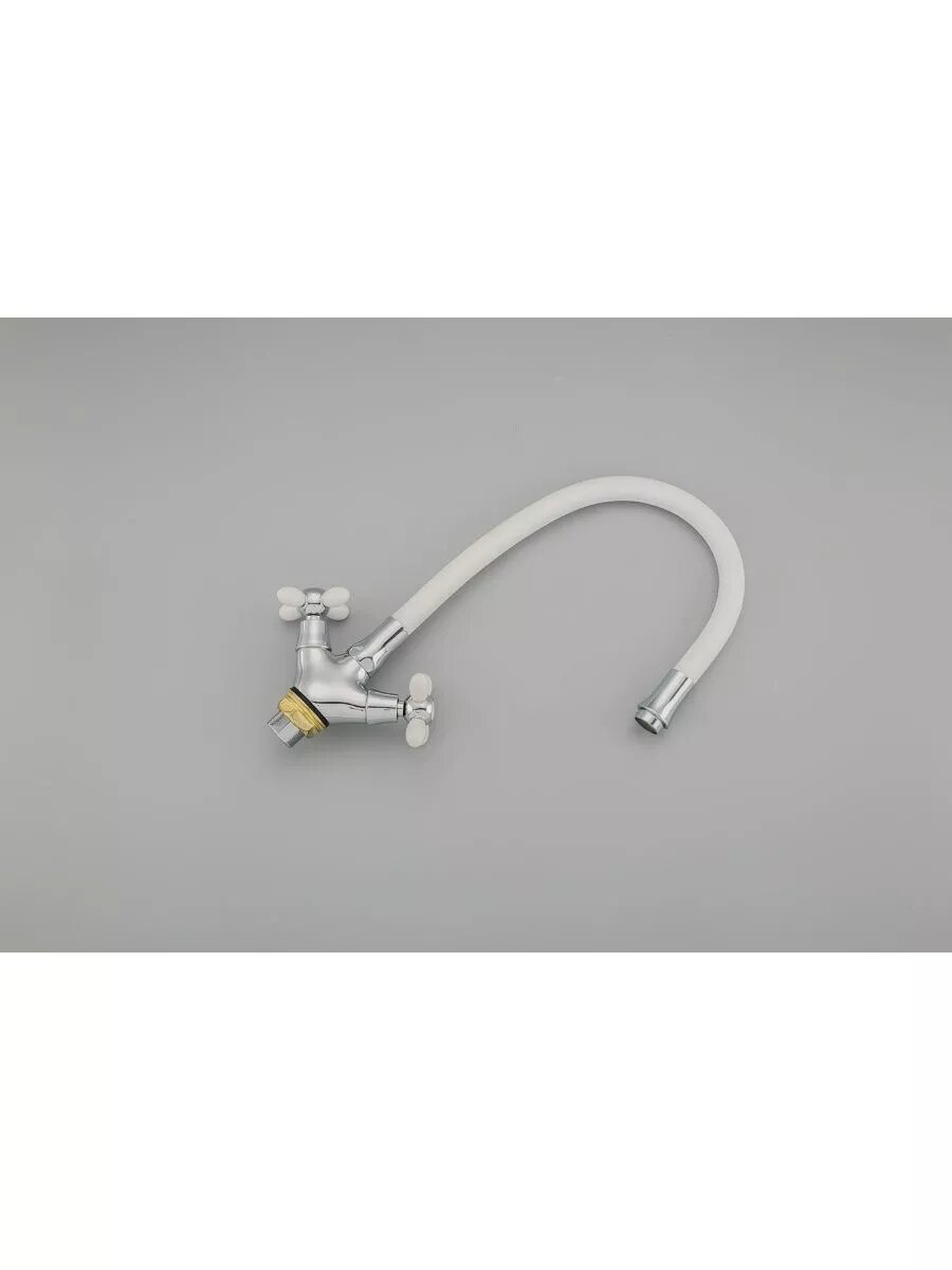 44127-7 Смеситель Кухня FRUD 1/2 м/к гибкий излив (белый/хром) на гайке
