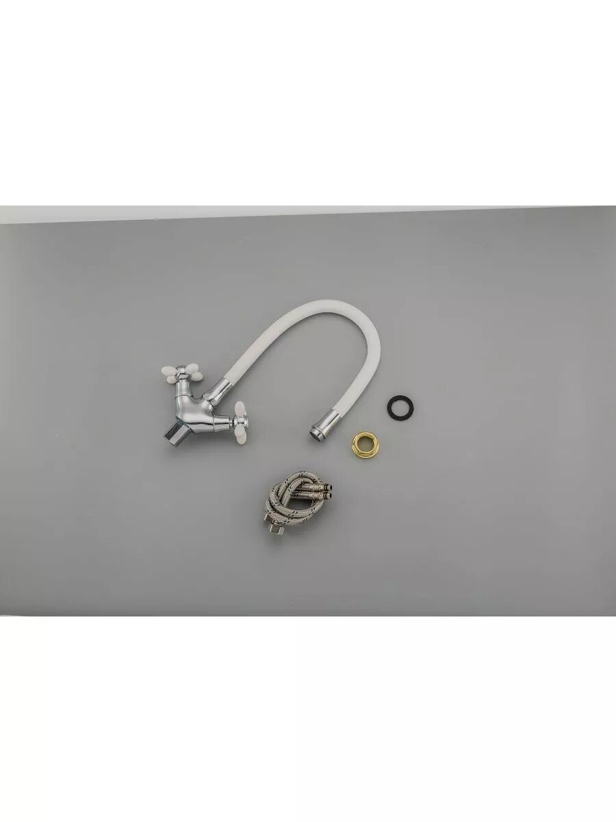 Смеситель для раковины FRUD R44127-7 с кран-буксой, гибкий излив, белый