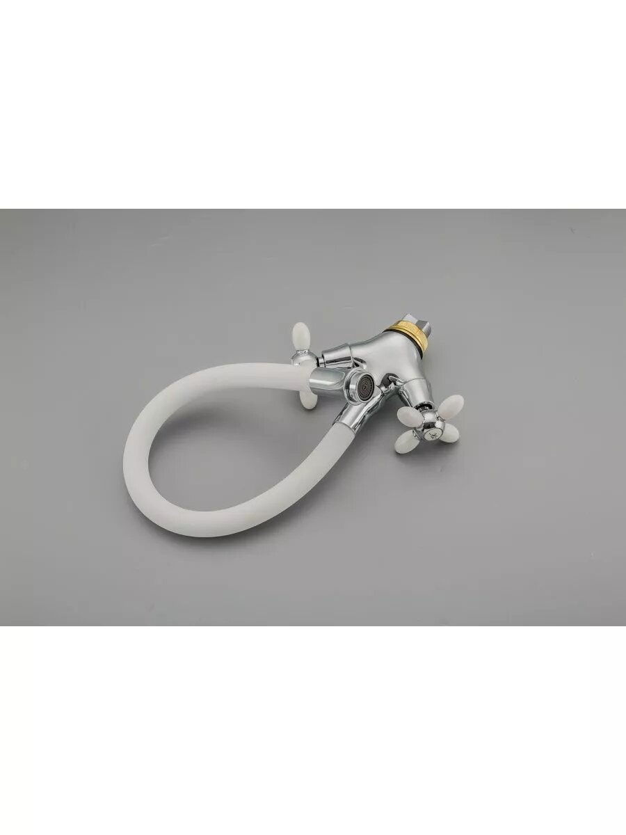 FRUD R44127-7, Смеситель для кухонной мойки (цвет: белый хром; гибкий излив; керамическая кран-букса)