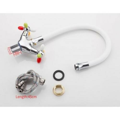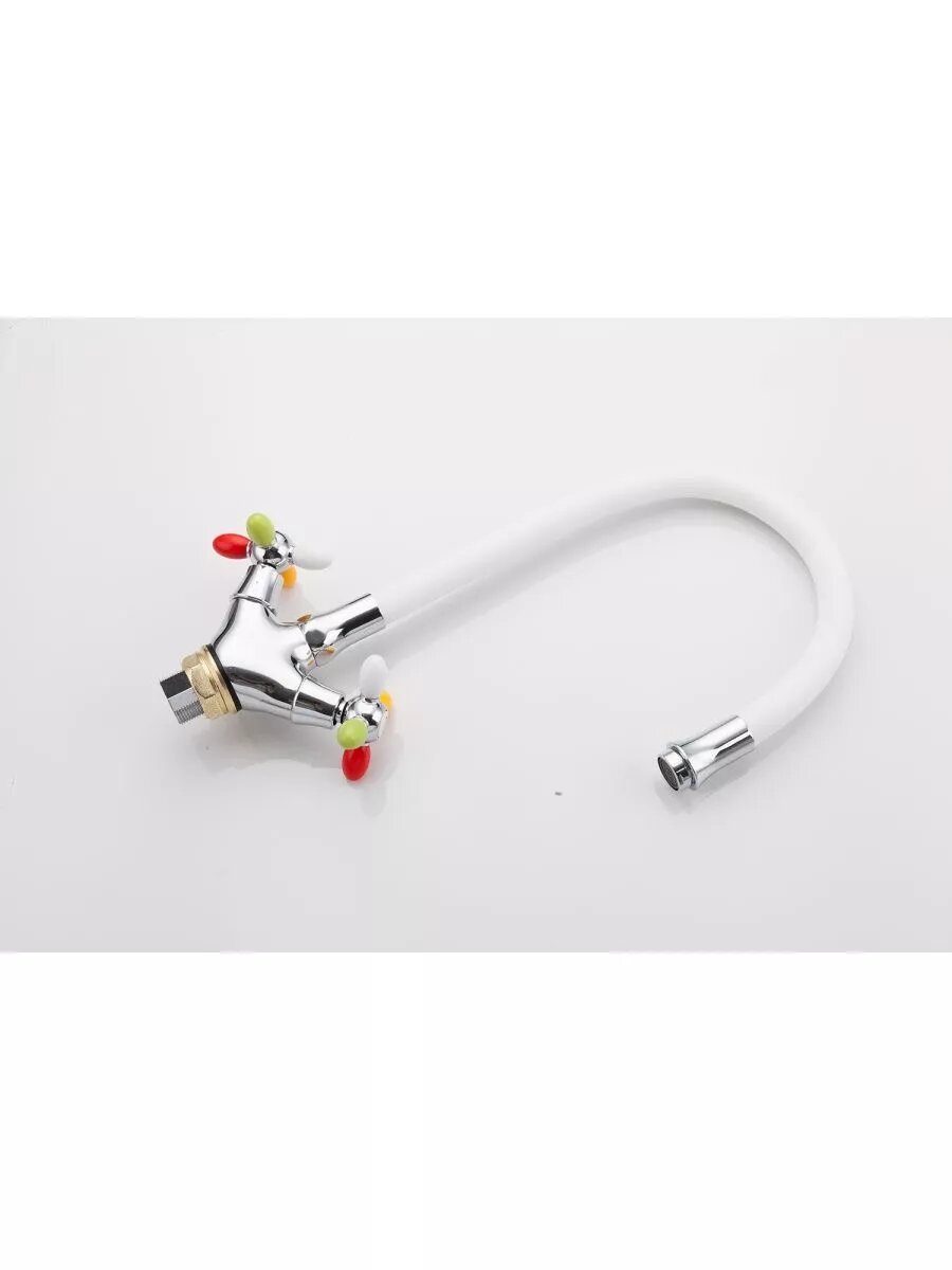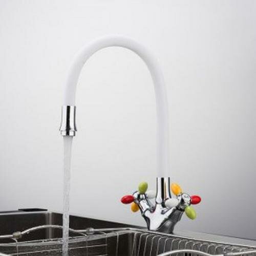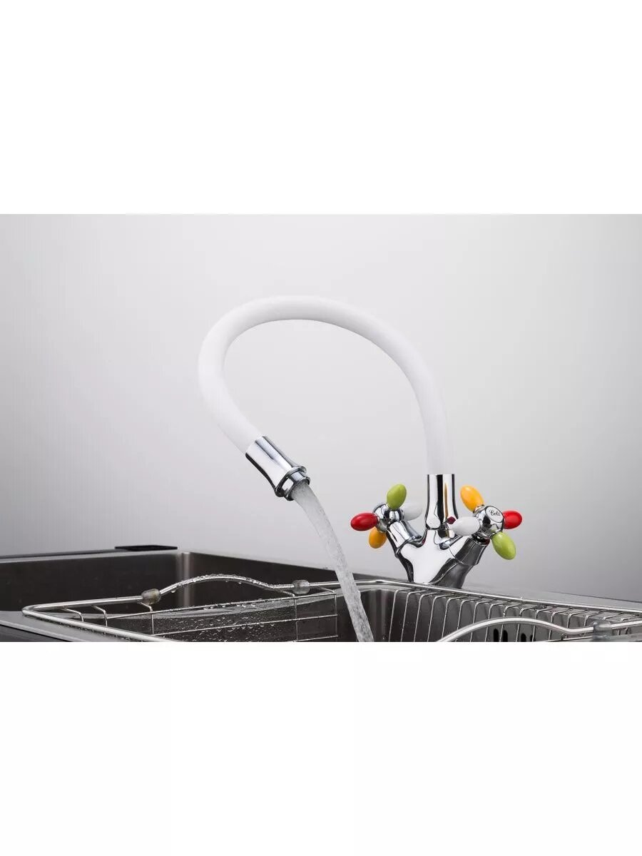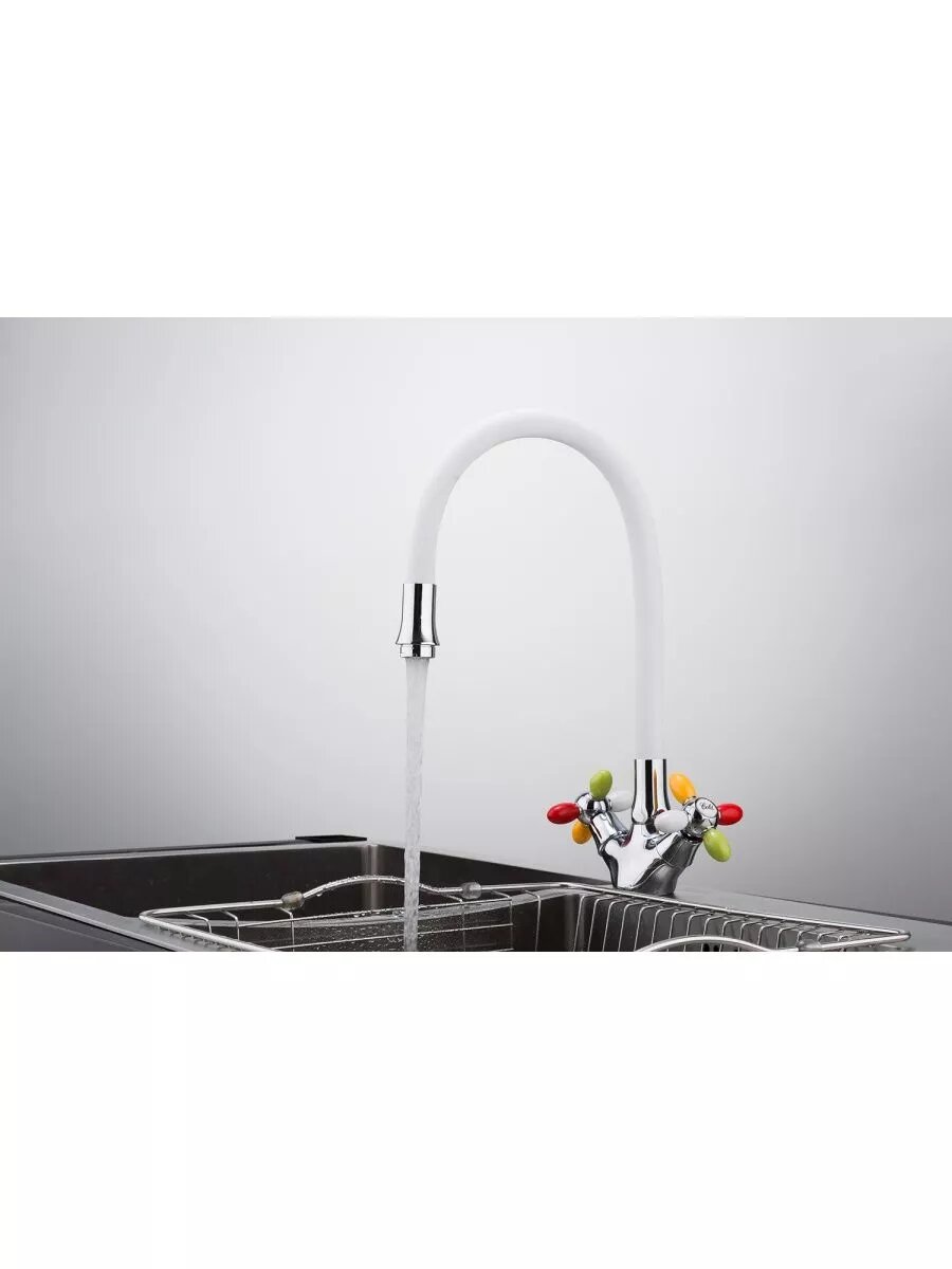 Смеситель для кухни с цветными ручками белый гибкий гусак FRUD R 44127-8