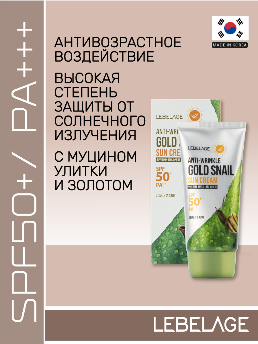 Купить Солнцезащитный крем против морщин с муцином улитки и золотом SPF50+ PA+++, 70мл, LEBELAGE