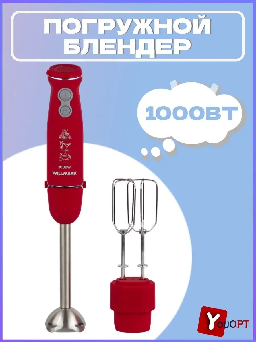 Блендер погружной WILLMARK WHB-1110RS (1000Вт, насадка миксер ,турбо кнопка, рег. скор., soft touch) интересное: