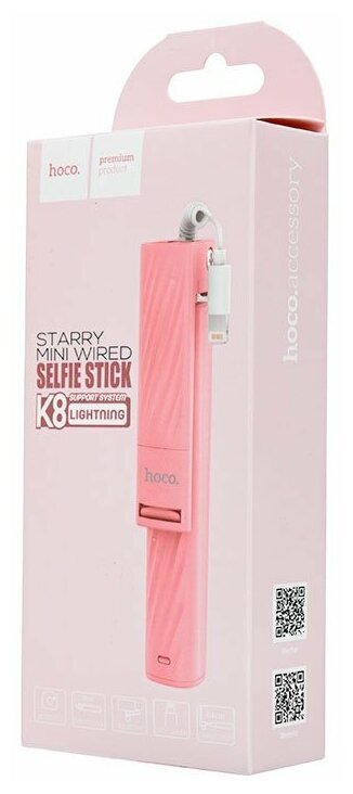 Монопод для селфи Hoco K8 Starry mini Lightning розовый интересное: