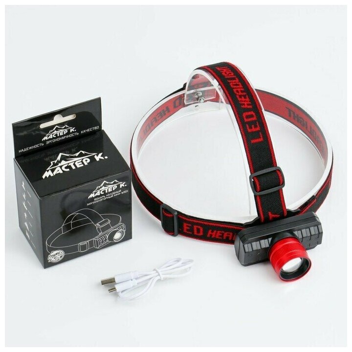 Фонарь налобный аккумуляторный "Мастер К", 5 Вт, 140 Лм, XPE, от usb, 7x5x3.5 см