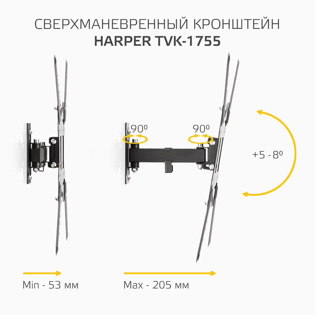 Кронштейн наклонно-поворотный для телевизора 23"-55", Harper TVK-1755