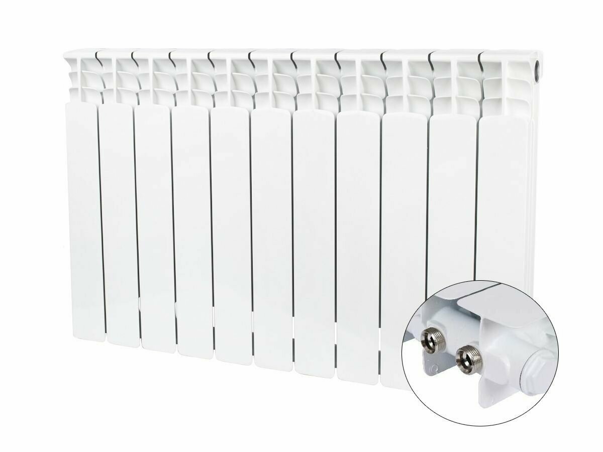 Купить Радиатор биметаллический STOUT Space 500 - 11 секций (подключение нижнее правое, цвет белый)