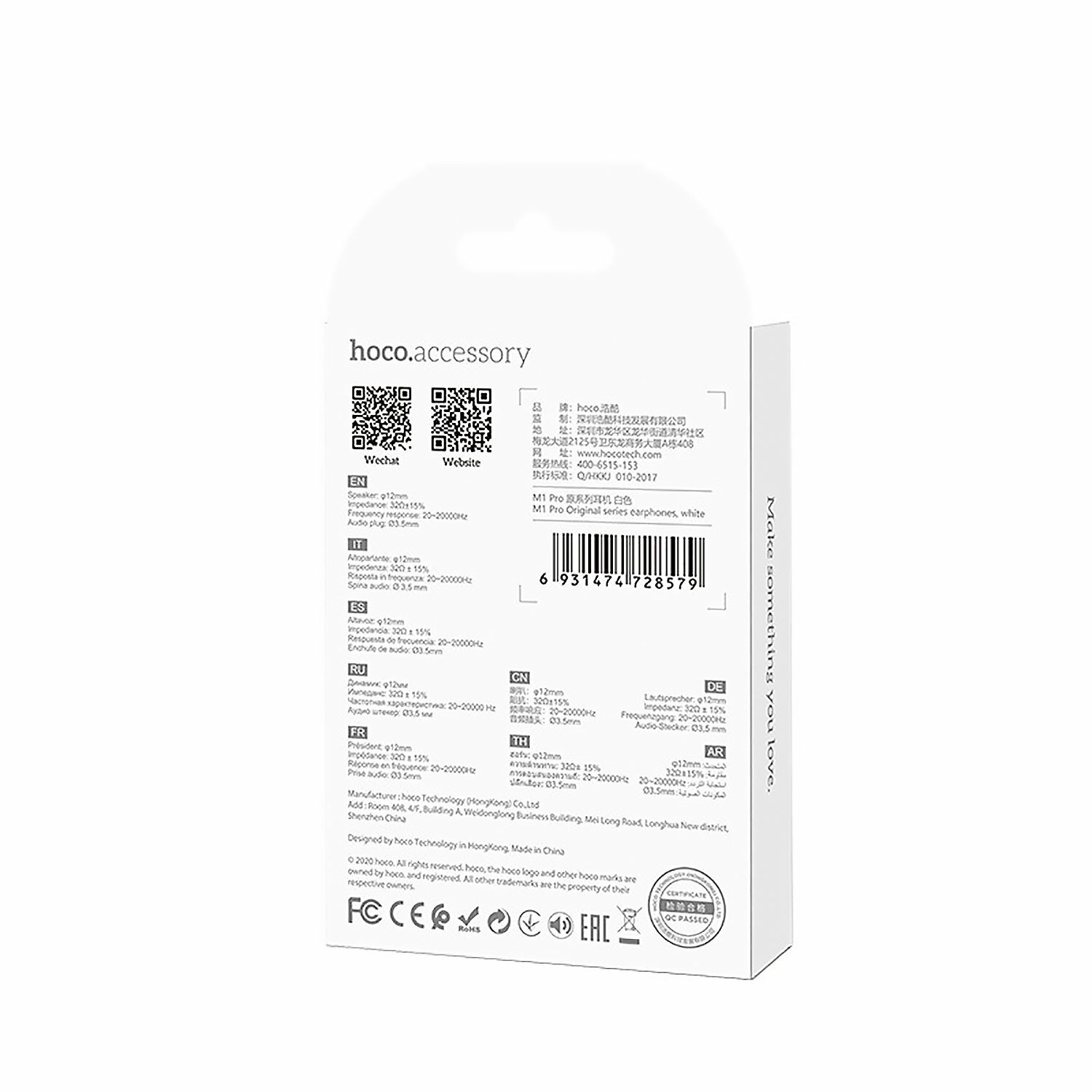Наушники HOCO M1 Pro Original, Jack 3.5mm, 1.2 м, белый, контроллер с микрофоном