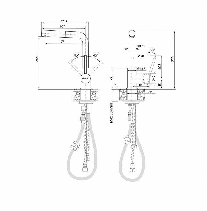 Смеситель для кухни с гибким выдвижным изливом Paulmark KASSEL, длина излива 187 мм, поворот 180 , однорычажный, латунь, на мойку / столешницу, черный металлик, Ka214311-418
