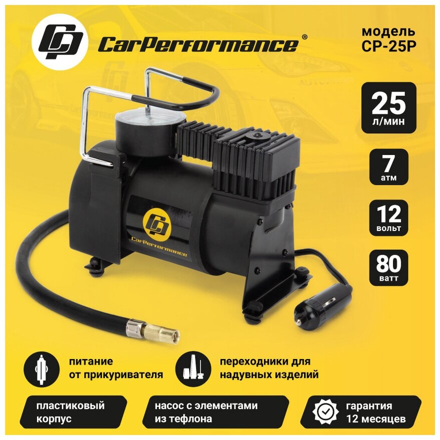 Компрессор воздушный CAR PERFORMANCE CP-25P, 25 л./мин., 12V/9A, 80W, 7 Атм., шланг 0,6 м., КП 2,8 м., питание от прикуривателя.