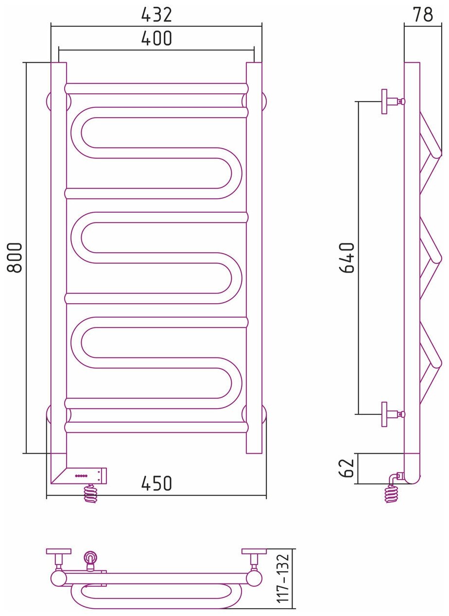 Полотенцесушитель Электрический Тругор Пэк сп 5 П 60х50 черный ВГП