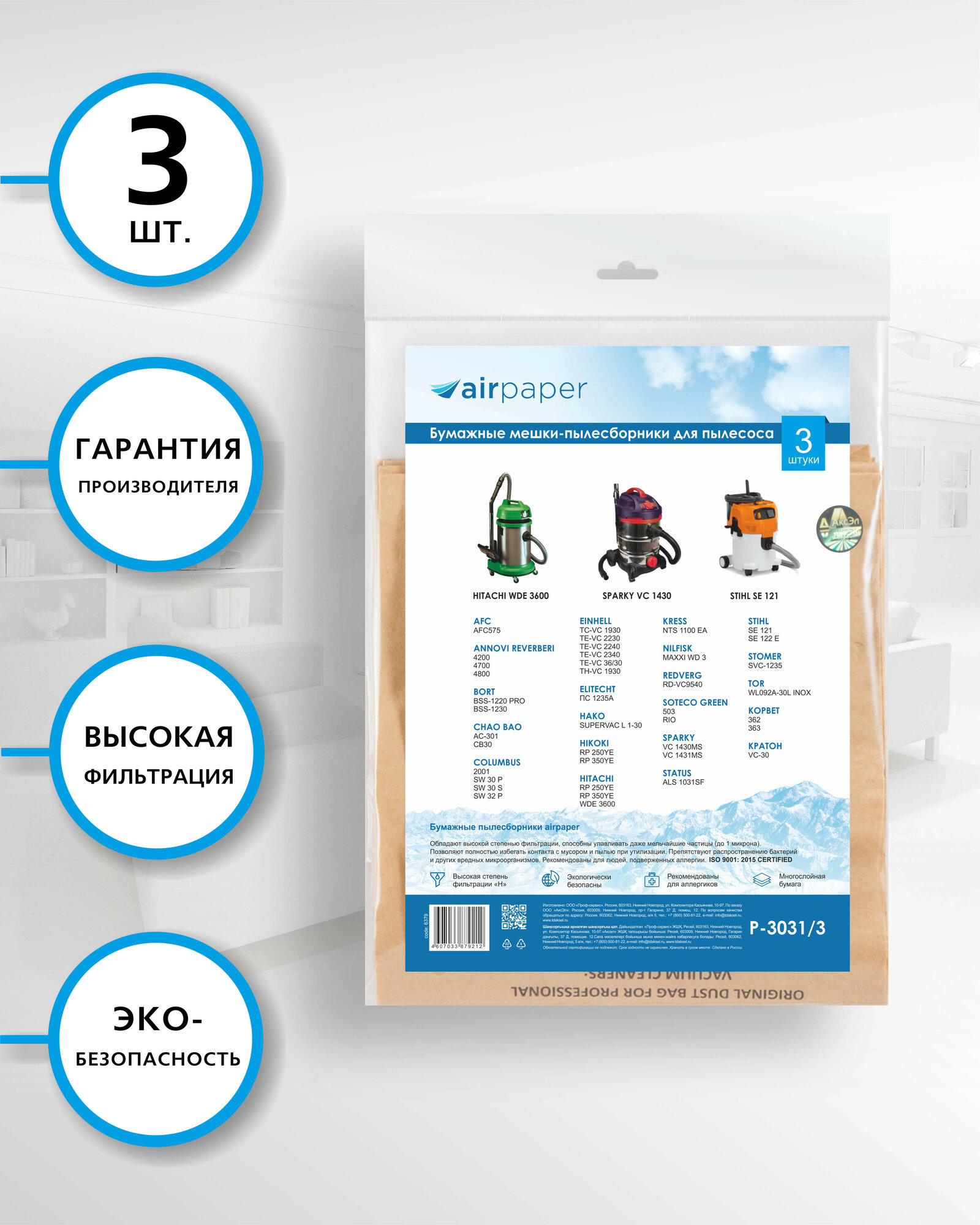 Мешки бумажные для пылесоса Airpaper P-3031/3, 3.12 л, 3 шт интересное: