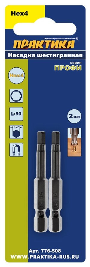 Бита HEX 4 Профи (2 шт; 50 мм) ПРАКТИКА 776-508