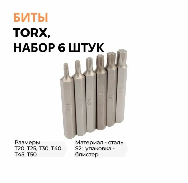 | Биты подробно | Т20, Т25, Т30, Т40, Т45, Т50 |