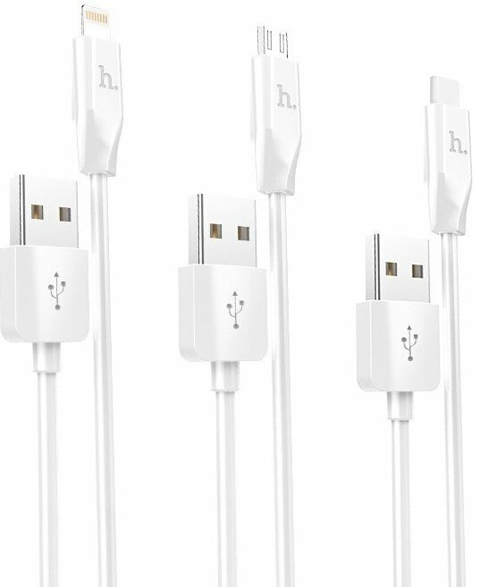 Кабель Hoco X1, microUSB/Lightning/Type-C - USB, 2.4 А, 1 м, белый