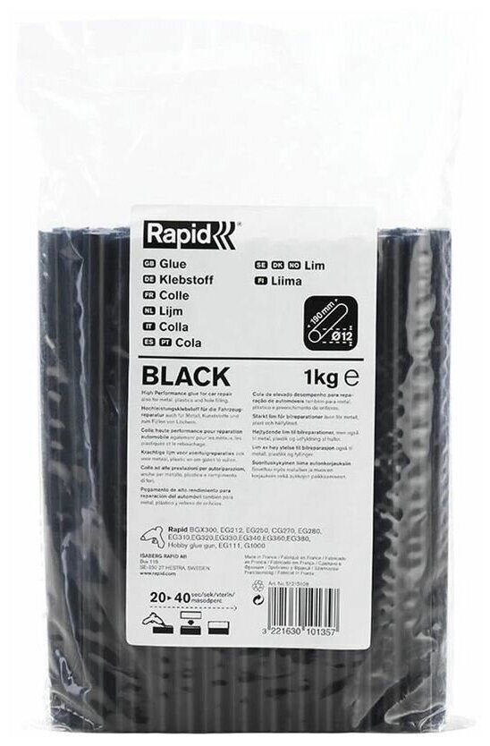 Клеевой стержень RAPID 51215108, d12 x 190 мм, 1 кг, профессиональный, автомобильный, черный