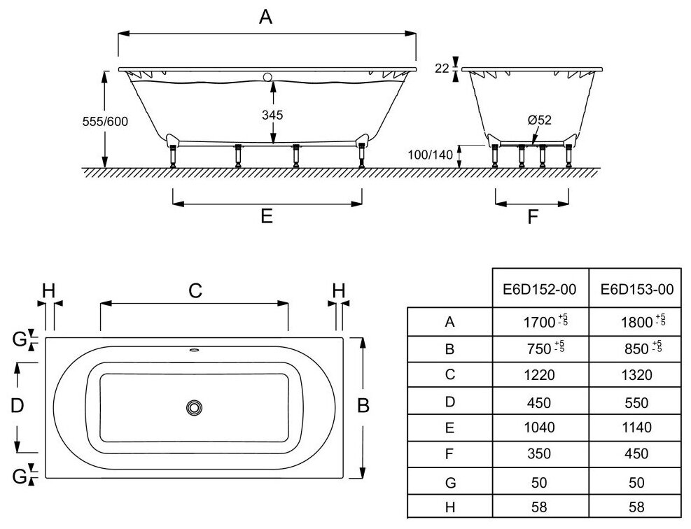 Ванна из искусственного камня Jacob Delafon Odeon Rive Gauche E6D152-00 + слив-перелив