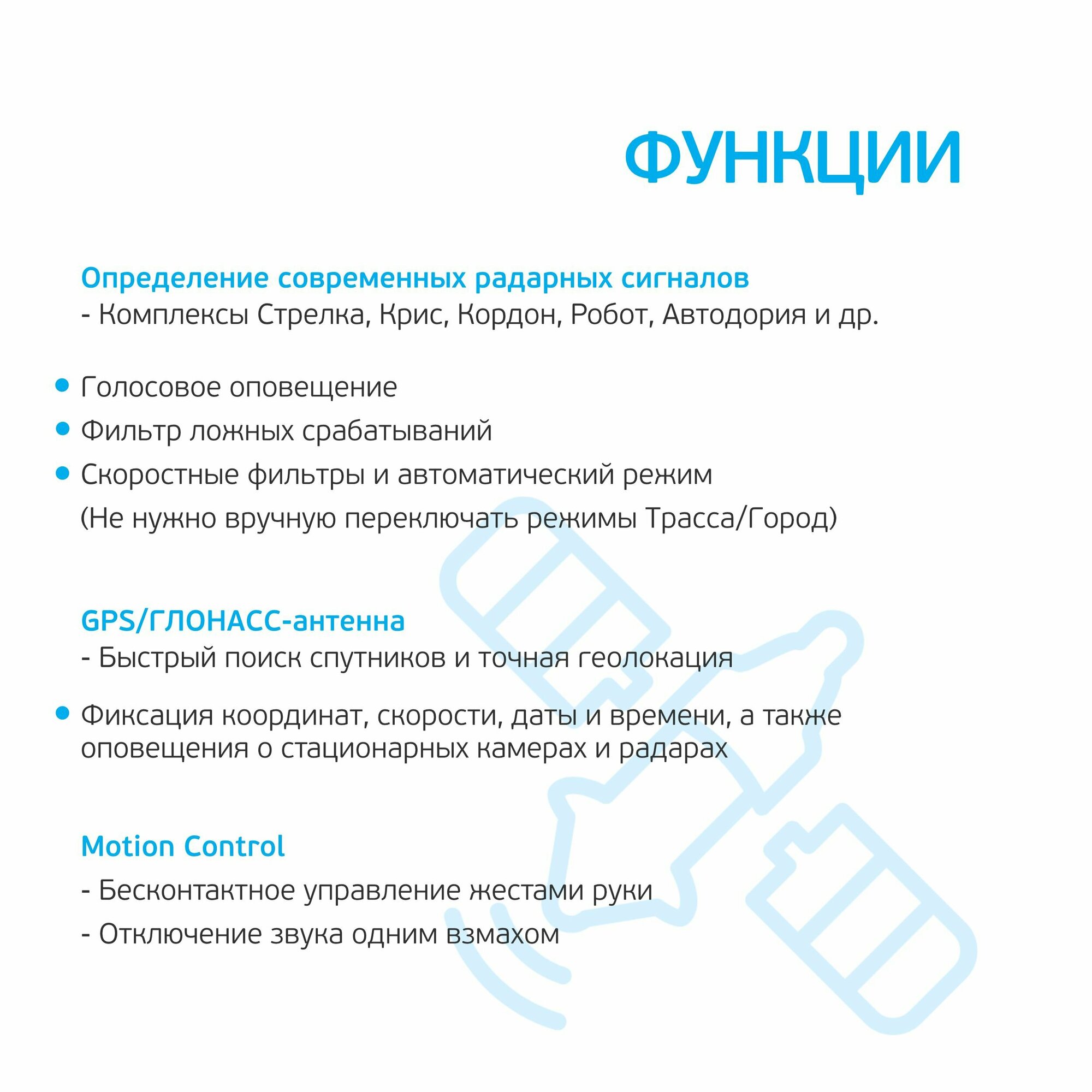 Сигнатурный радар-детектор, наличие модулей GPS и ГЛОНАСС