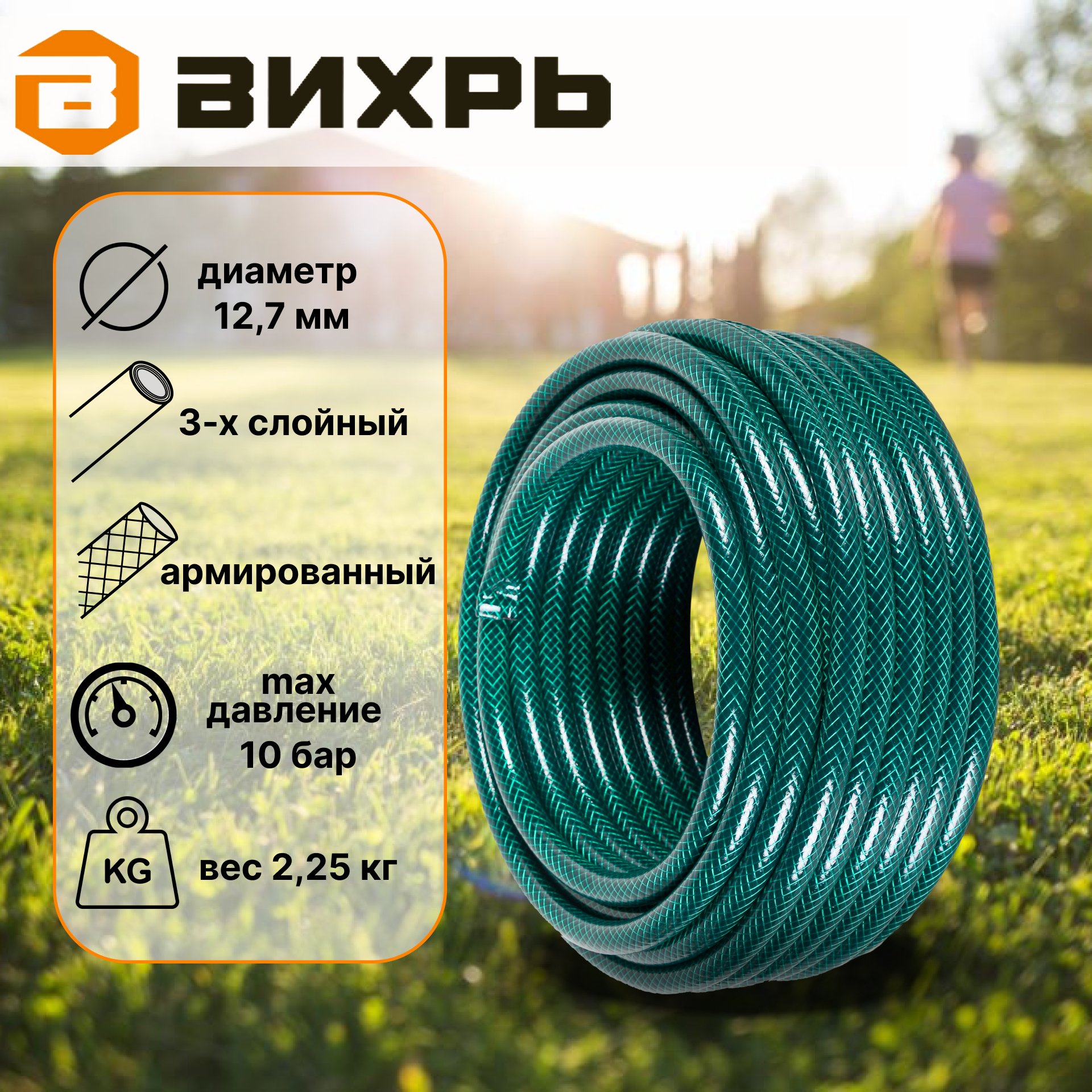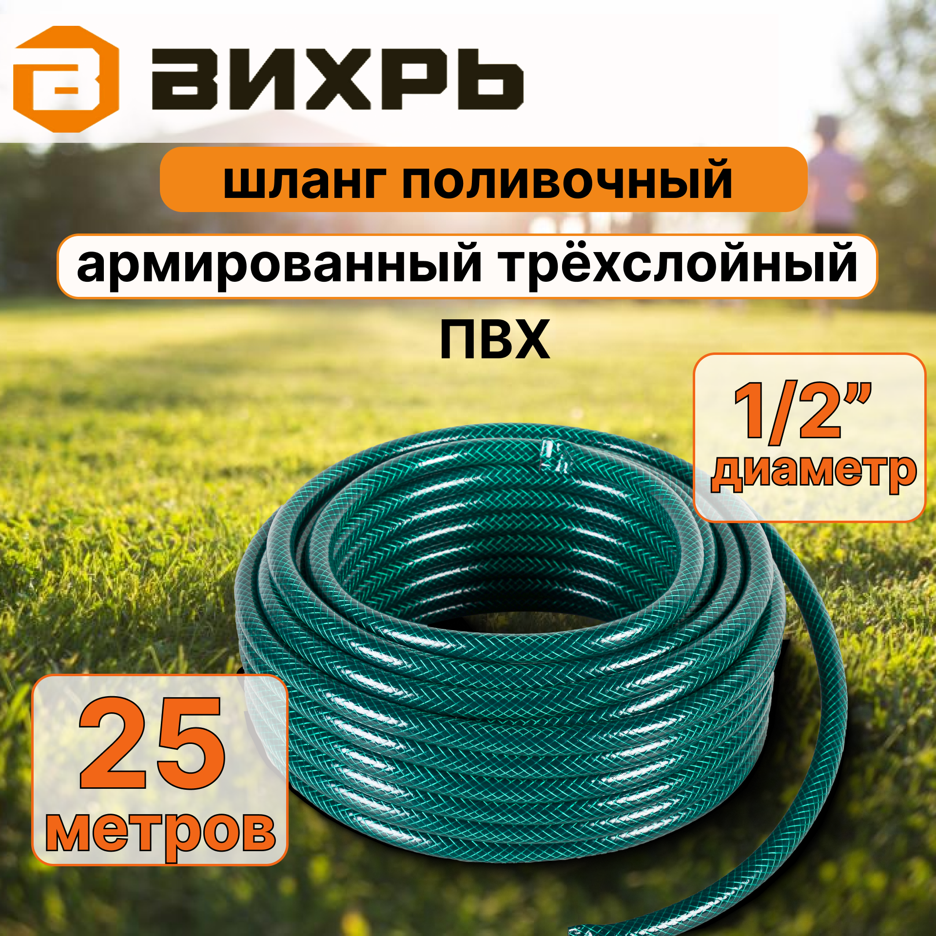 Купить Шланг поливочный ПВХ, трёхслойный армированный 1/2, 25м Вихрь