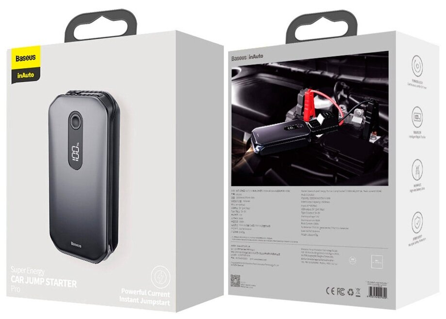 Пусковое зарядное устройство Baseus Super Energy Car Jump Starter PRO + Внешний аккумулятор 12000 мАч + LED фонарь, черный, CRJS03-01