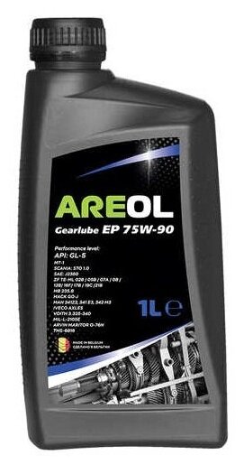 Купить 75W90AR083 AREOL AREOL Gearlube EP 75W90 (1л) полусинт. трансм. масло для гипоидных передач\ API GL-5, MB 235.8