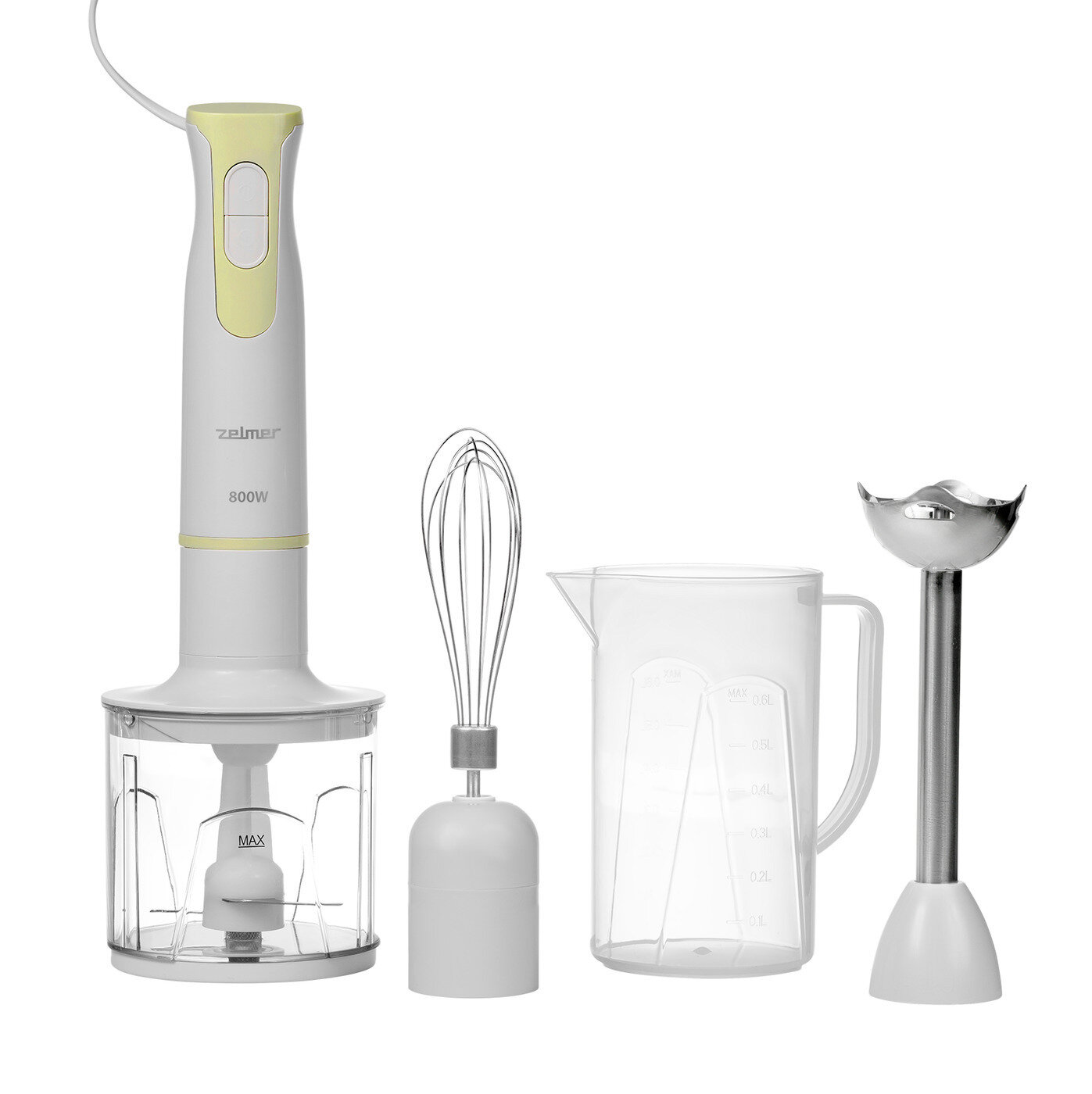 ZELMER Блендер Zelmer ZHB4552S, погружной, 800 Вт, 0.8/0.45 л, 2 скорости, режим «турбо», белый