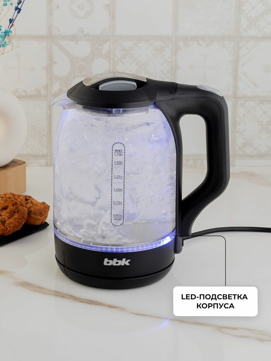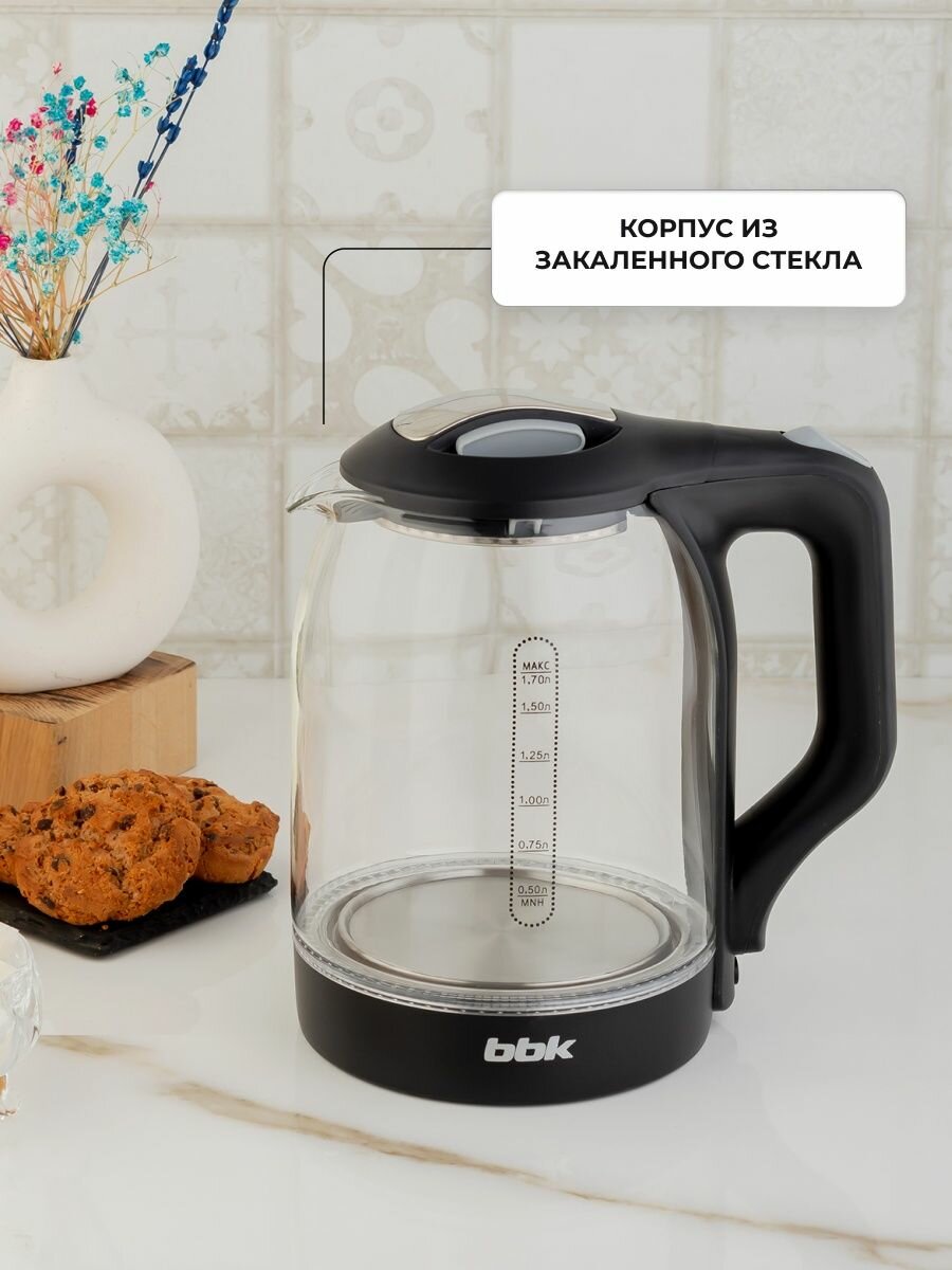 Чайник электрический BBK EK1724G, 1,7л, 2200Вт, стекло/пластик