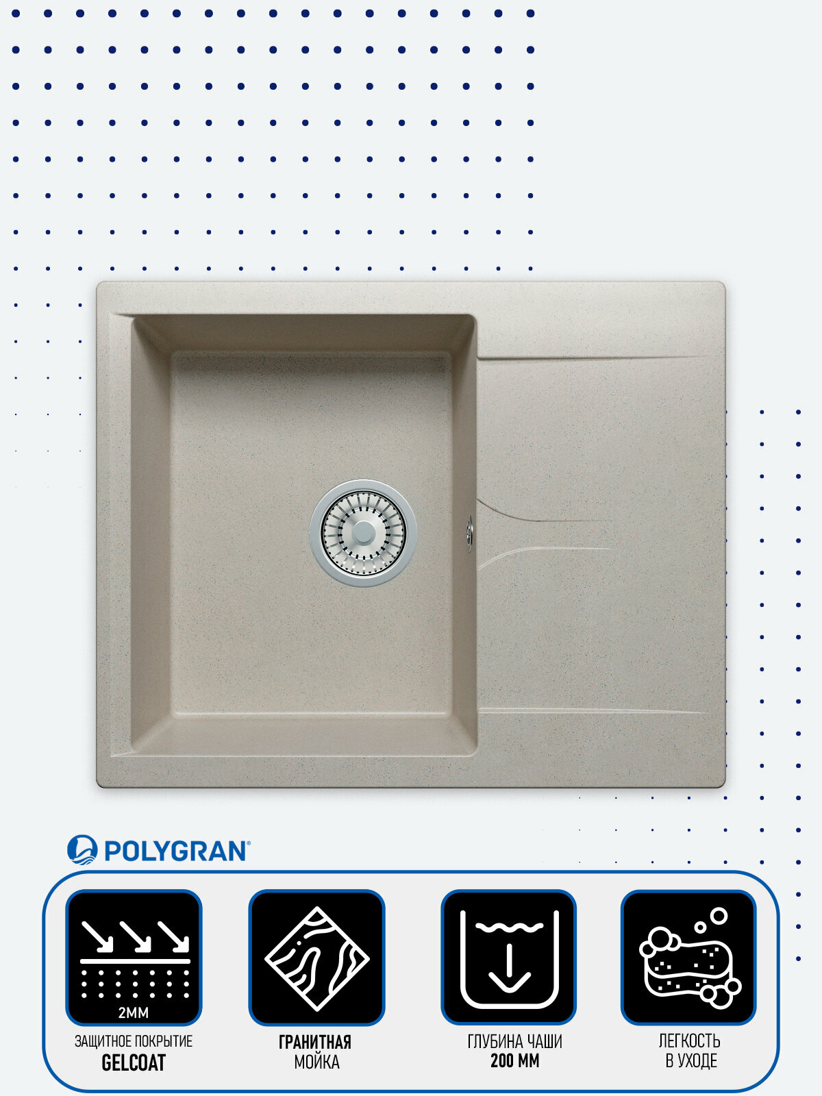 Мойки Polygran GALS-620, мойка, мрамор, песочный 302