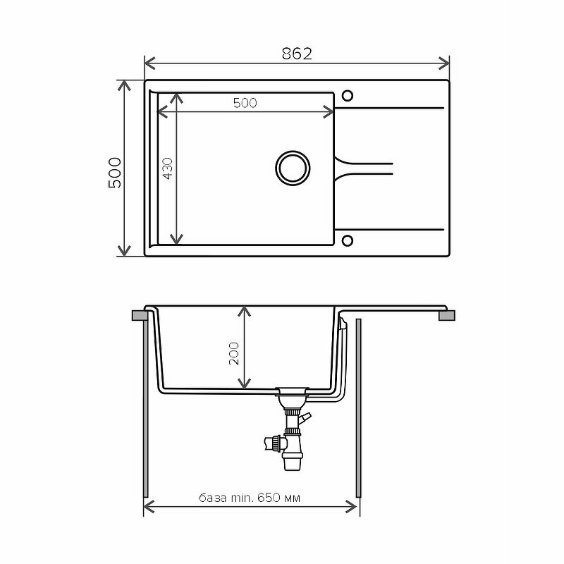 Врезная кухонная мойка 86.2х50см, Polygran Gals-862, матовое черный 16