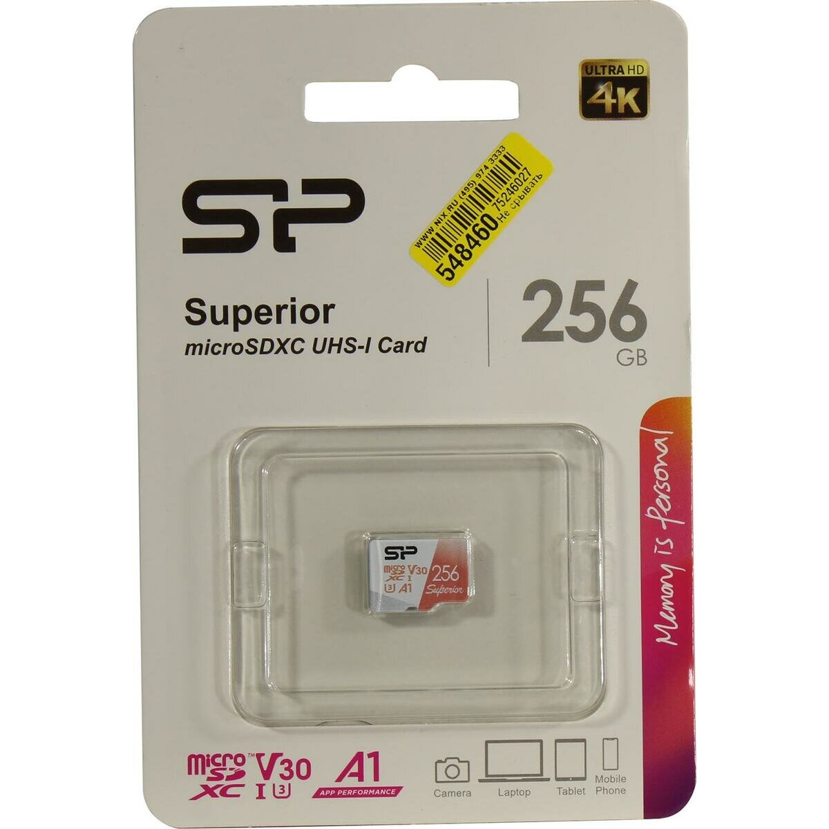 Карта памяти microSDXC Silicon Power 256Gb Superior UHS-I U3 V30 A1 4K 100MB/s SP256GBSTXDV3V20SP, 1шт.