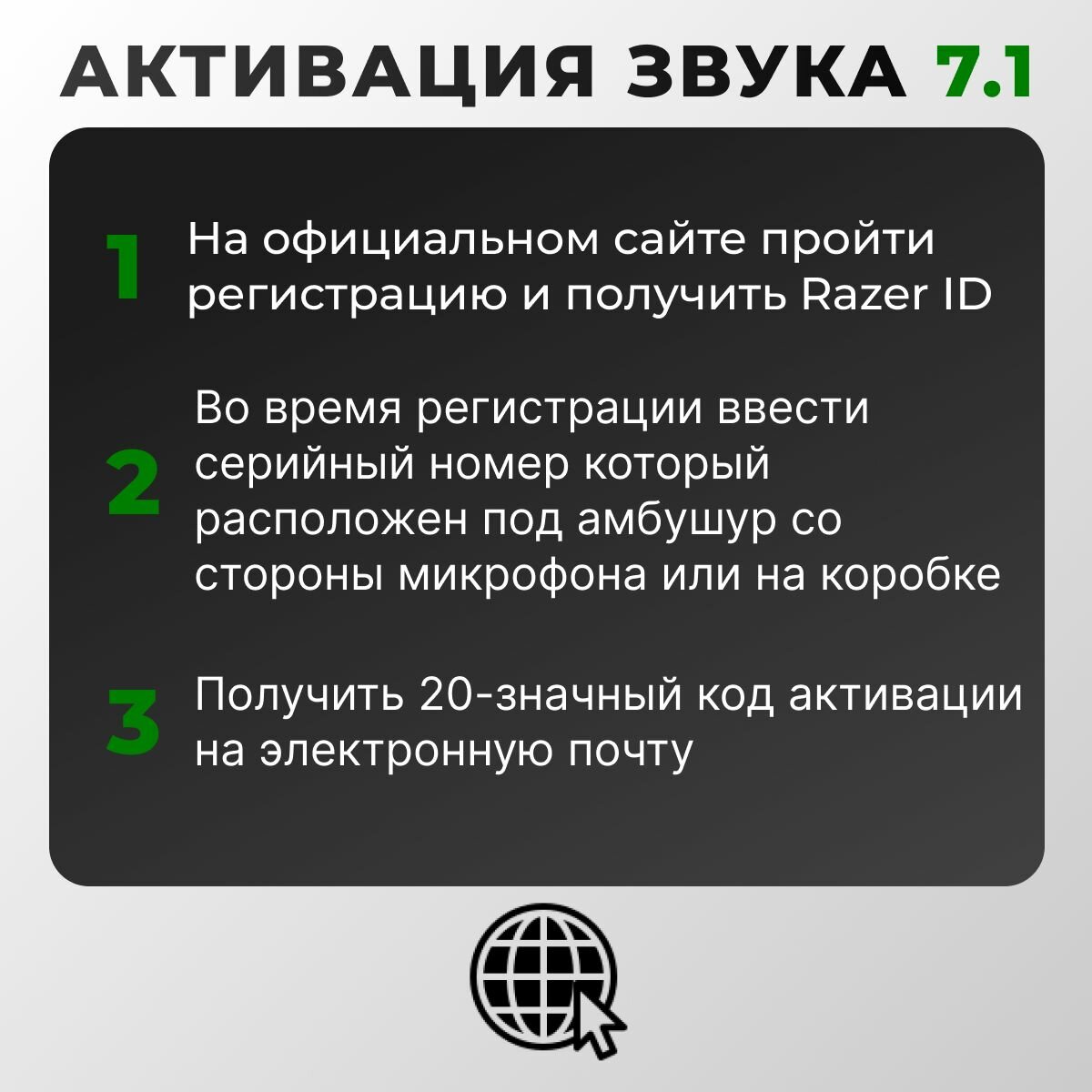 -Идеально подходит для сэтапов без звуковой карты -7.1 отлично отрабатывает позиционирование в шутерах -С микрофона все слышат, шумов и посторонних звуков нет |