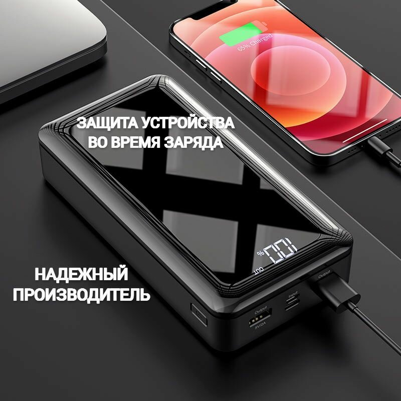 | Отзыв: | Хватает на 4 зарядки моего iPhone 11 pro, если посчитать то там ~12000-15000 mah от заявленных 30.000 |