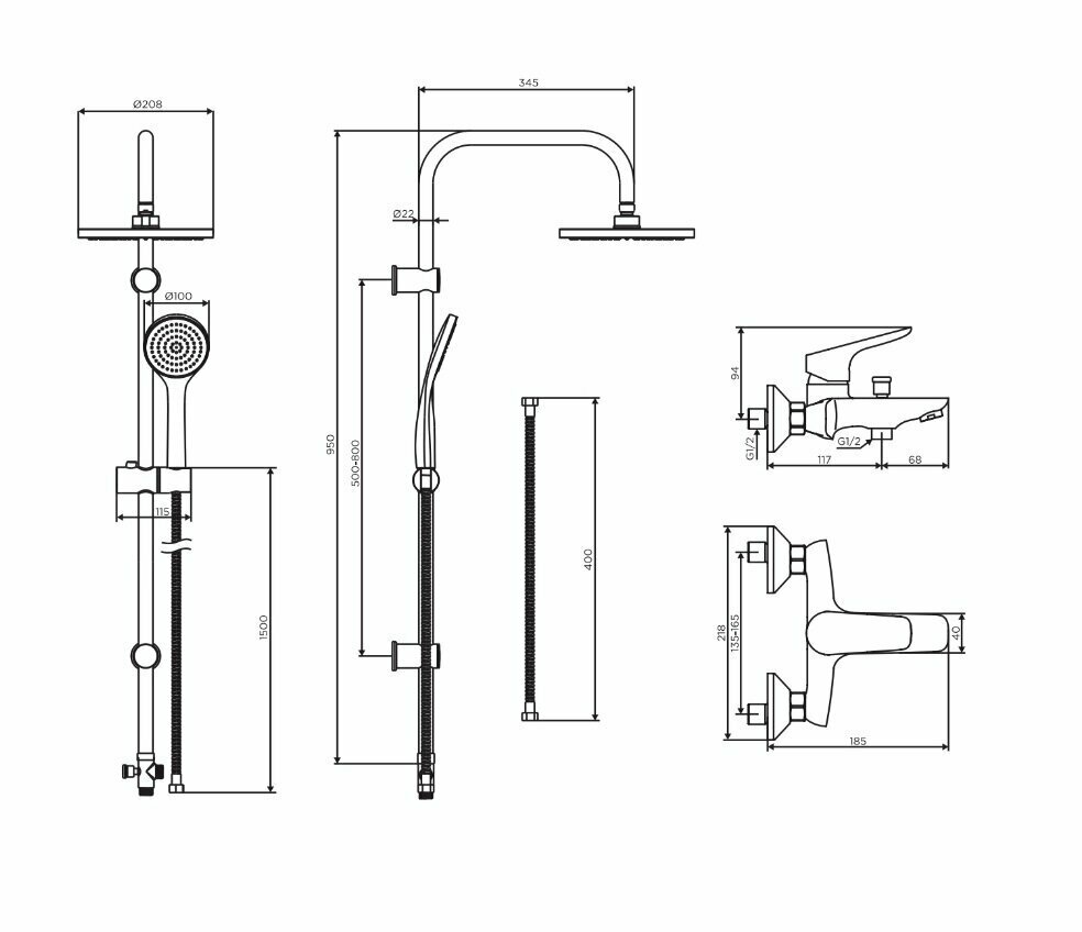 Душевая система Dorff 2в1 D0708010BL: душевая система Comfort DORFF со смесителем DAMIXA Origin Bit