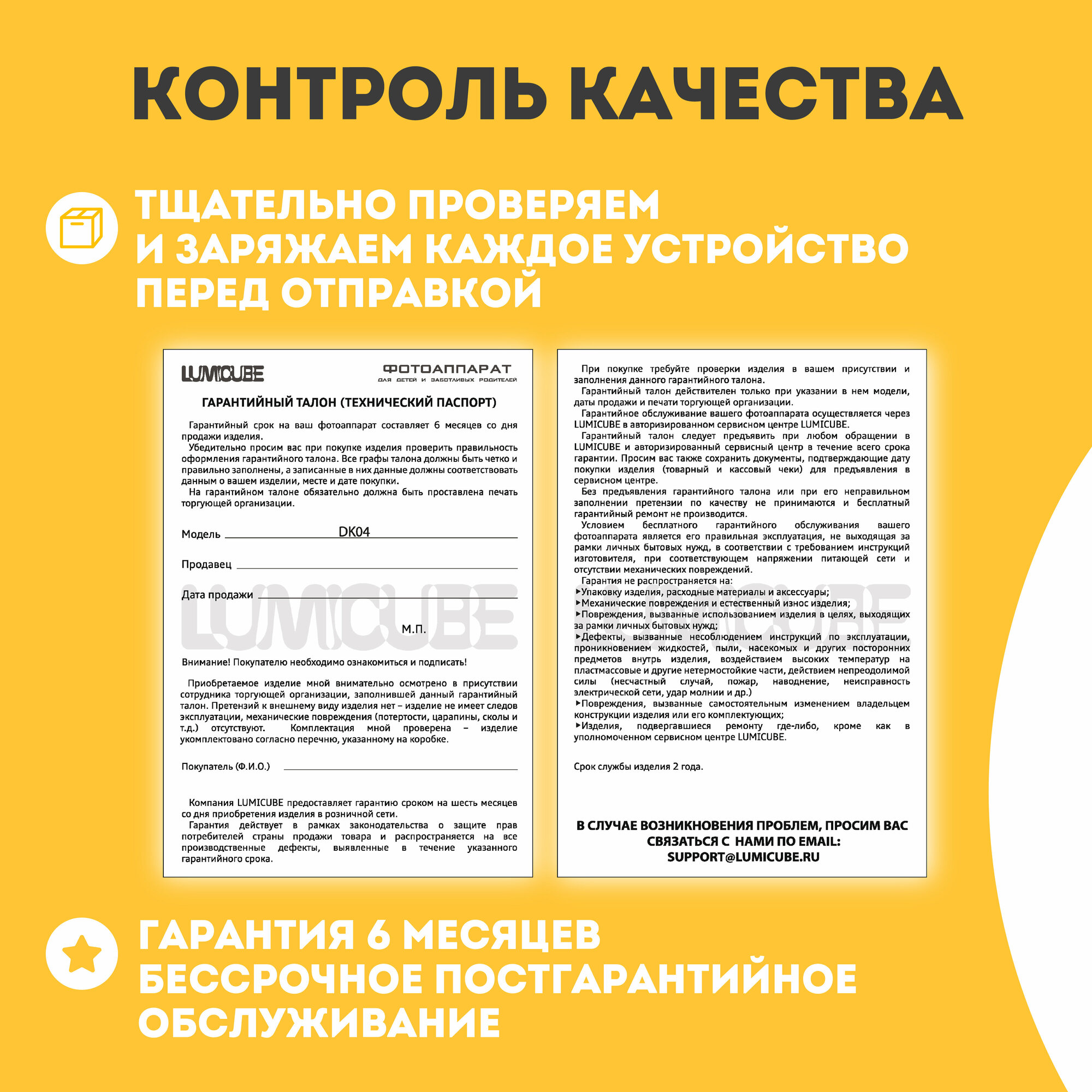 Фотоаппарат моментальной печати LUMICUBE DK04, печать снимка 50x100 мм, yellow